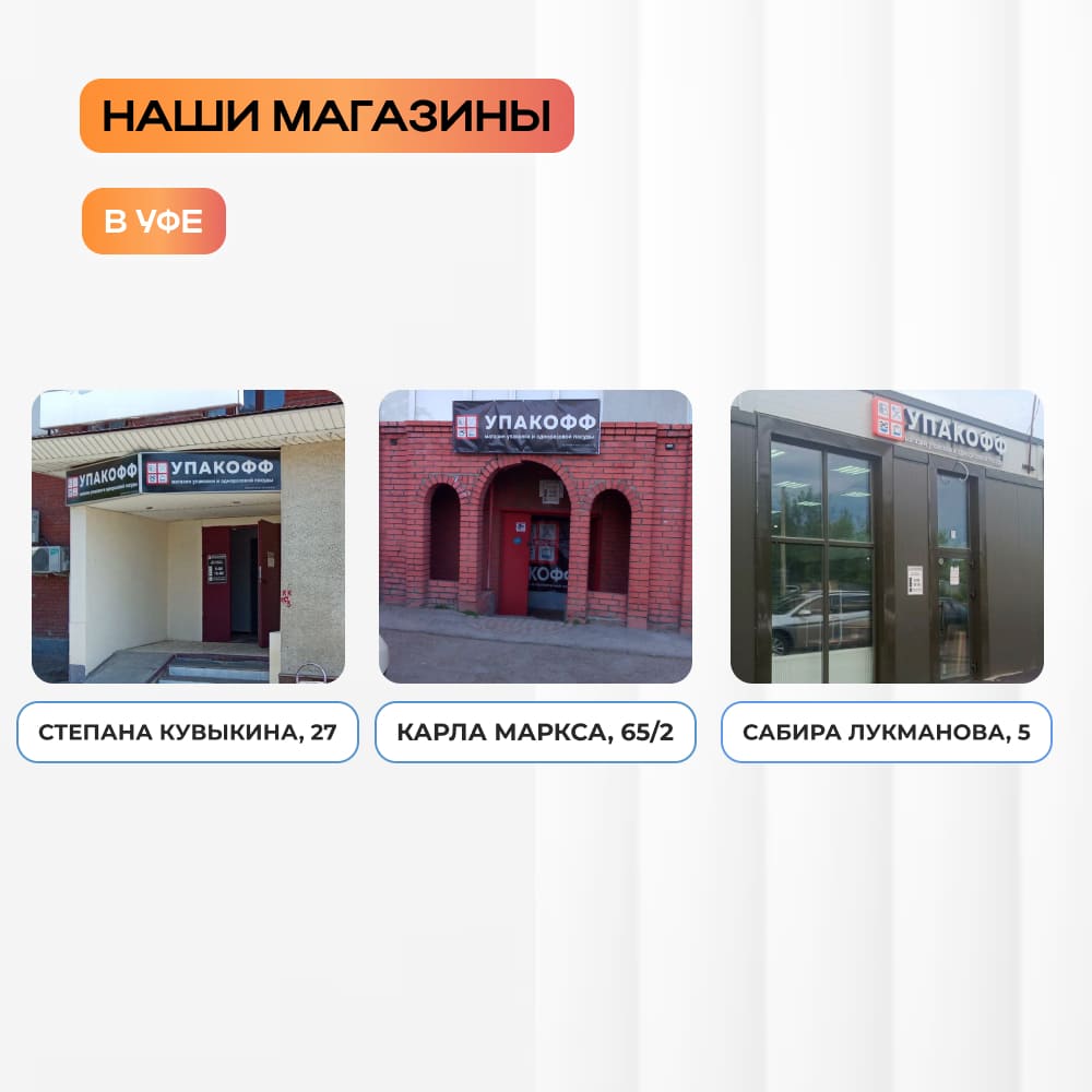 Приглашаем вас в магазины "Упакофф" в Уфе! У нас есть всё необходимое для вашего бизнеса и быта. Наши консультанты всегда помогут подобрать оптимальное решение под ваши задачи. Экономьте время и деньги вместе с нами!