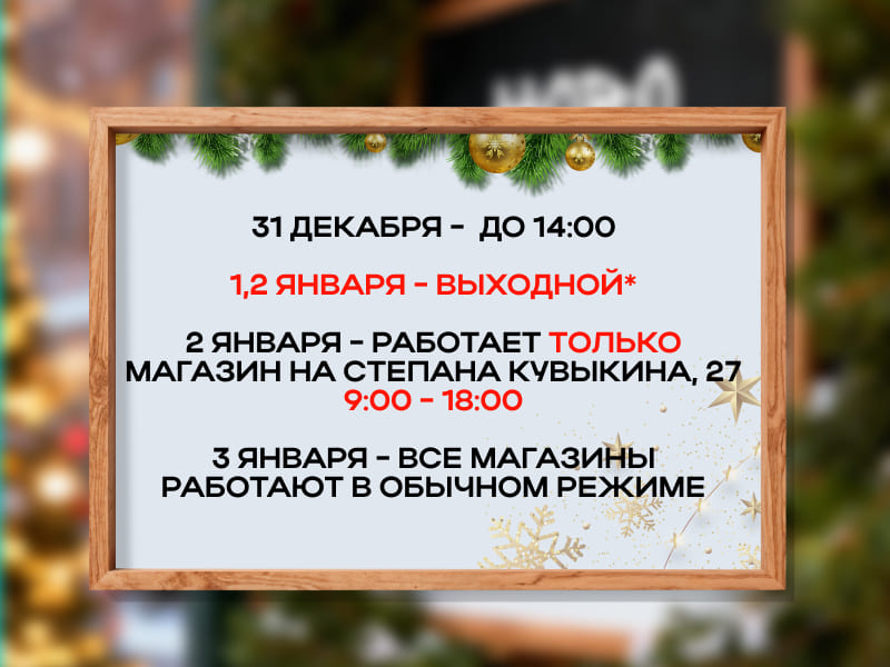 2 января — работает только магазин по адресу: ул. Степана Кувыкина, 27, с 9:00 до 18:00